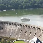 Sperrmauer Museum Ederseeの近くに位置するFerienwohnung Edersonne Hemfurth-Ederseeはテラス,宿泊施設中ののWi-Fi付きの客室を提供しています. アパ-トメントからAquaparkまで徒歩6分以内です.